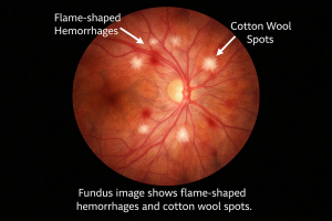 3) The fundus image shows flame-shaped hemorrhages and cotton wool spots. What is the grade of hypertensive retinopathy?