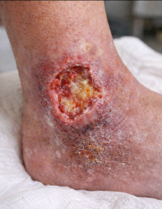 8) The ulcer shown is most likely due to: